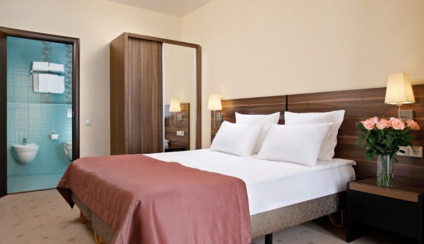 Заезд в санаторий в 14:00, выезд — в 12:00.