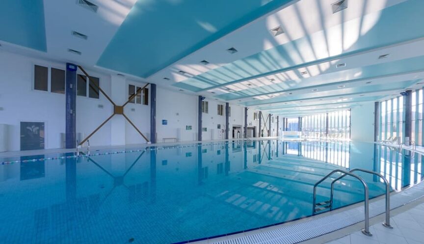 Бассейн комплекса площадью 652 м² (размеры 25×65 м, глубина 0,30–1,80 м, объём 1 100 м³) с температурой воды 27–29 °C. В комплексе — джакузи, зона термотерапии, водопад, имитация морских волн и детский бассейн (+32 °C).