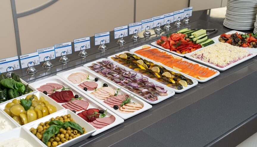 Гости санатория «Русь», разместившиеся в стандартных номерах, могут посещать обеденный зал «Скандинавия». Для тех, кто выбрал номер «Люкс», предусмотрены VIP зал «Сан-сити» и VIP зал диетического питания «Диет-холл».