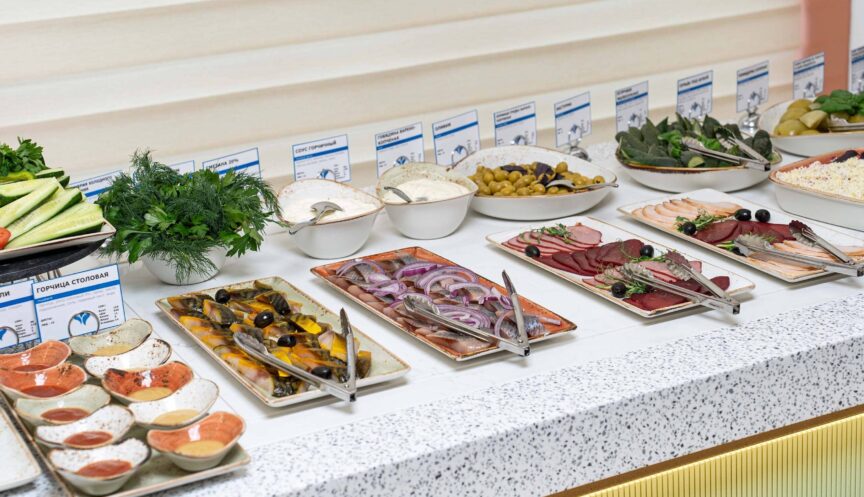 Гости санатория «Русь», разместившиеся в стандартных номерах, могут посещать обеденный зал «Скандинавия». Для тех, кто выбрал номер «Люкс», предусмотрены VIP зал «Сан-сити» и VIP зал диетического питания «Диет-холл».
